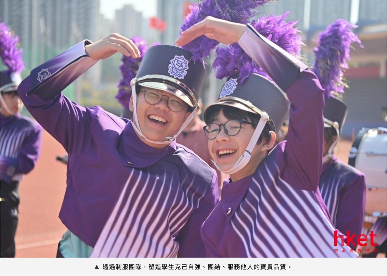 該校校風淳樸,融洽有序,學校透過多元活動,營造積極正向的成長環境。其中中一、中二學生必須參加制服團隊,包括童軍、女童軍、紅十字青年團、升旗隊、香港青少年軍及步操樂團等,塑造學生克己自強、團結、服務他人的寶貴品質。另外,學校與社區緊密連結,共組織了3 隊義工組織,積極帶領學生回饋社會、關懷社會上的弱勢人士。