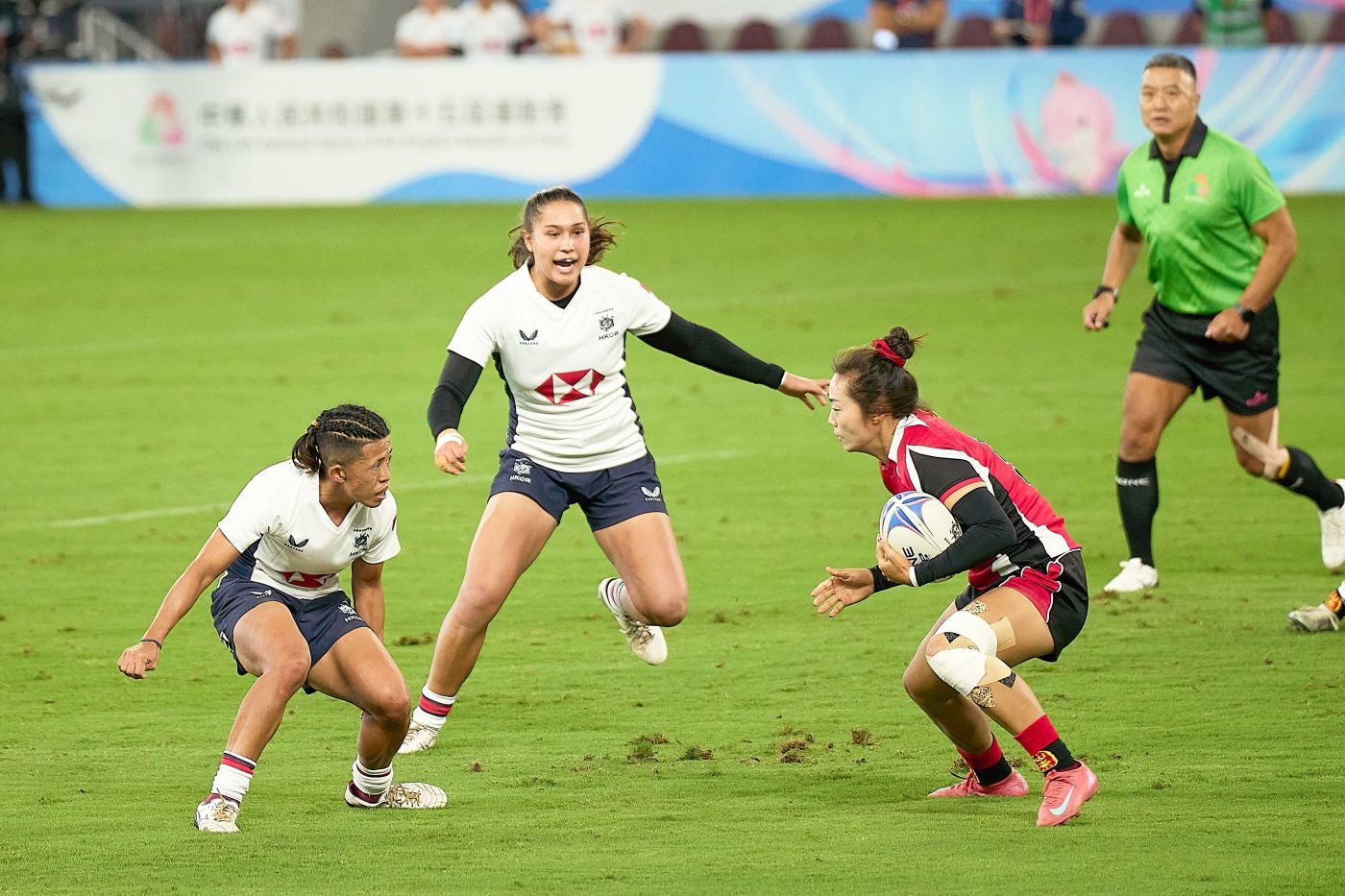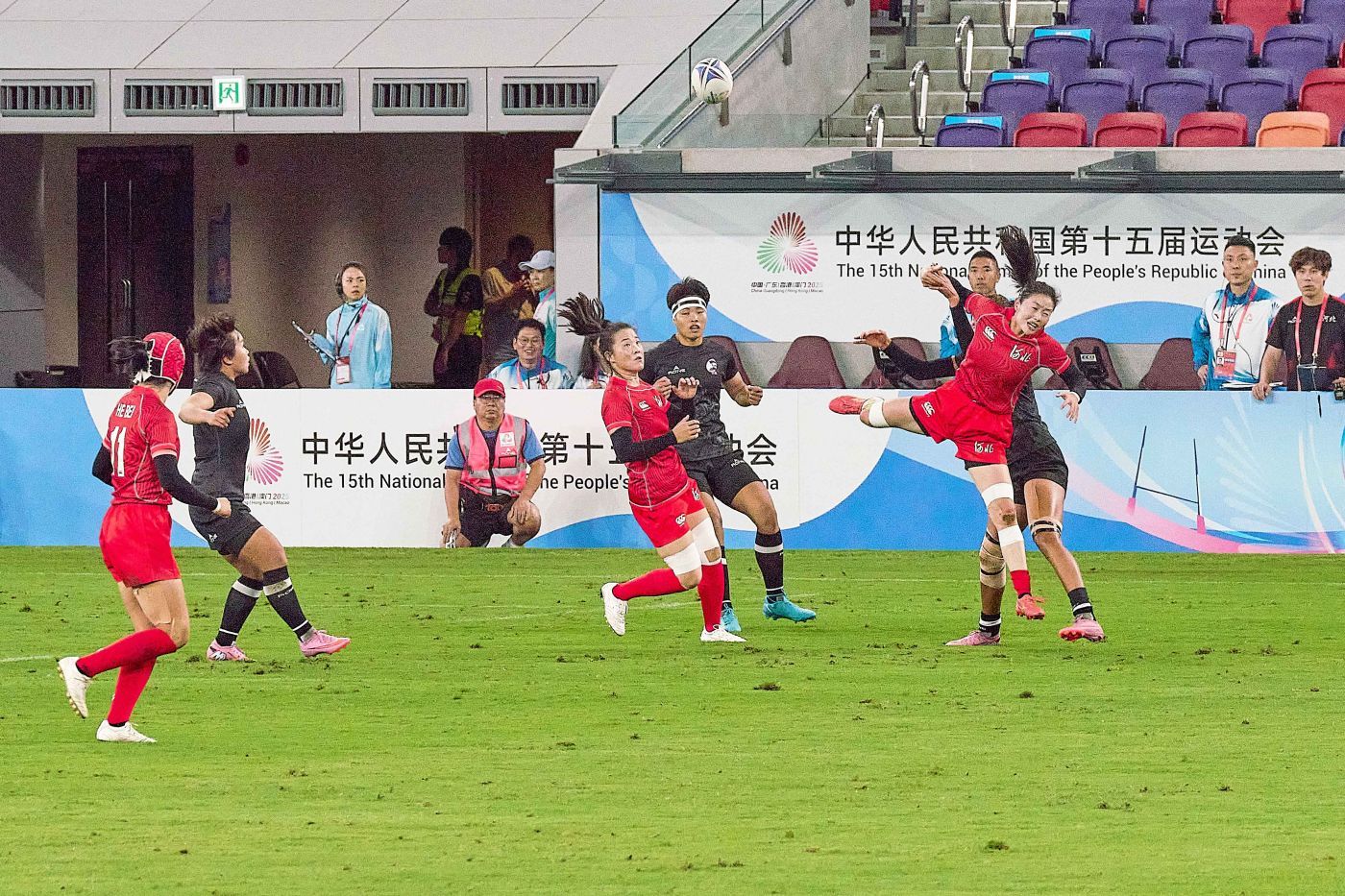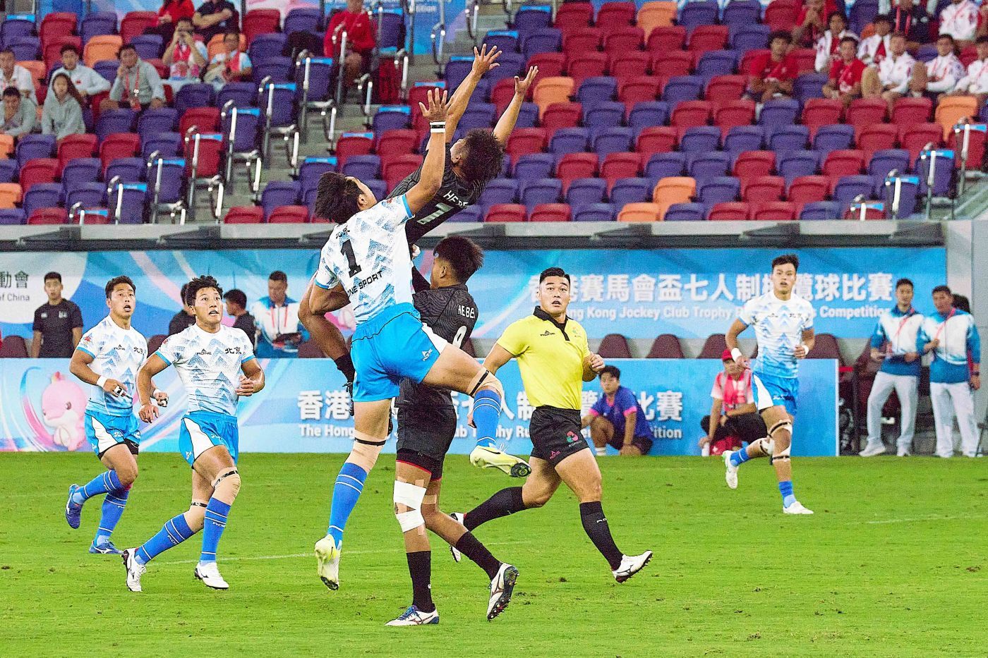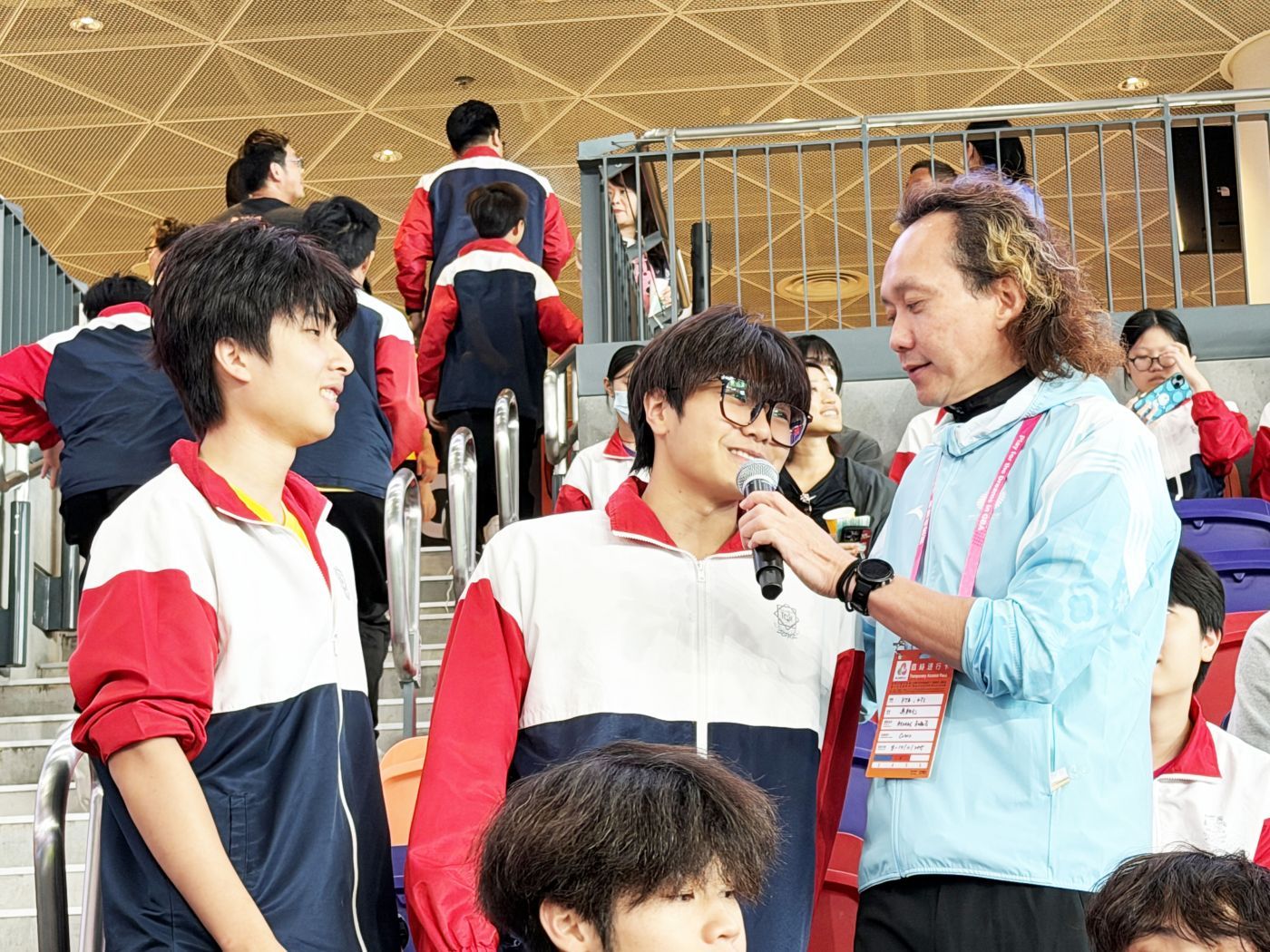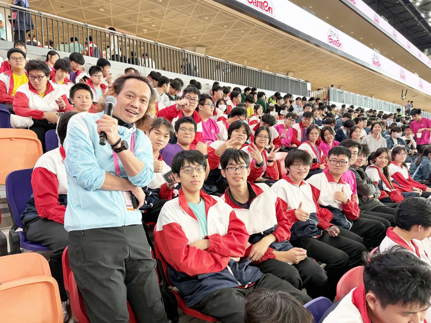 All students are present at the Kai Tak Main Venue, which can accommodate 50,000 people, to support the Hong Kong team competing in the Rugby Sevens at the National Games!