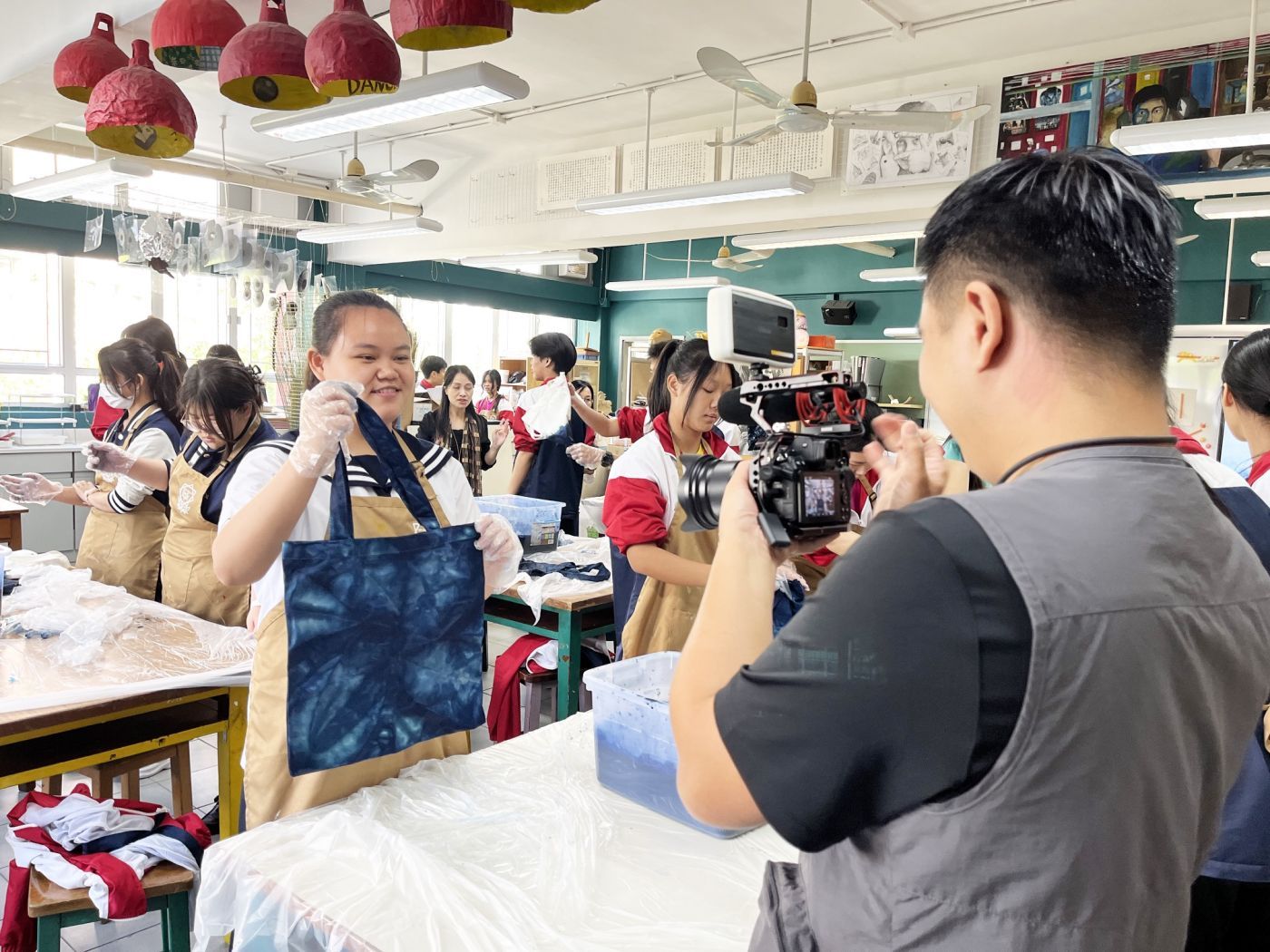 The art of Dongtou Blue, a unique traditional craft of weaving and dyeing, remains one of the last surviving forms in the Hakka region of Guangdong. This craft employs natural plant-based dyes and is produced through intricate processes, showcasing not only the exquisite nature of traditional craftsmanship but also embodying profound cultural significance. The "Dongtou Blue: Hakka Traditional Dyeing and Weaving Workshop," organized by the Federation of Hong Kong Guangdong Community Organisations in collaboration with the General Association of Hong Kong Heyuan Societies and the Hong Kong Community and Construction Association, provided students from our school with the opportunity to create their own indigo-dyed works, allowing them to experience the distinct charm of this ancient skill.
