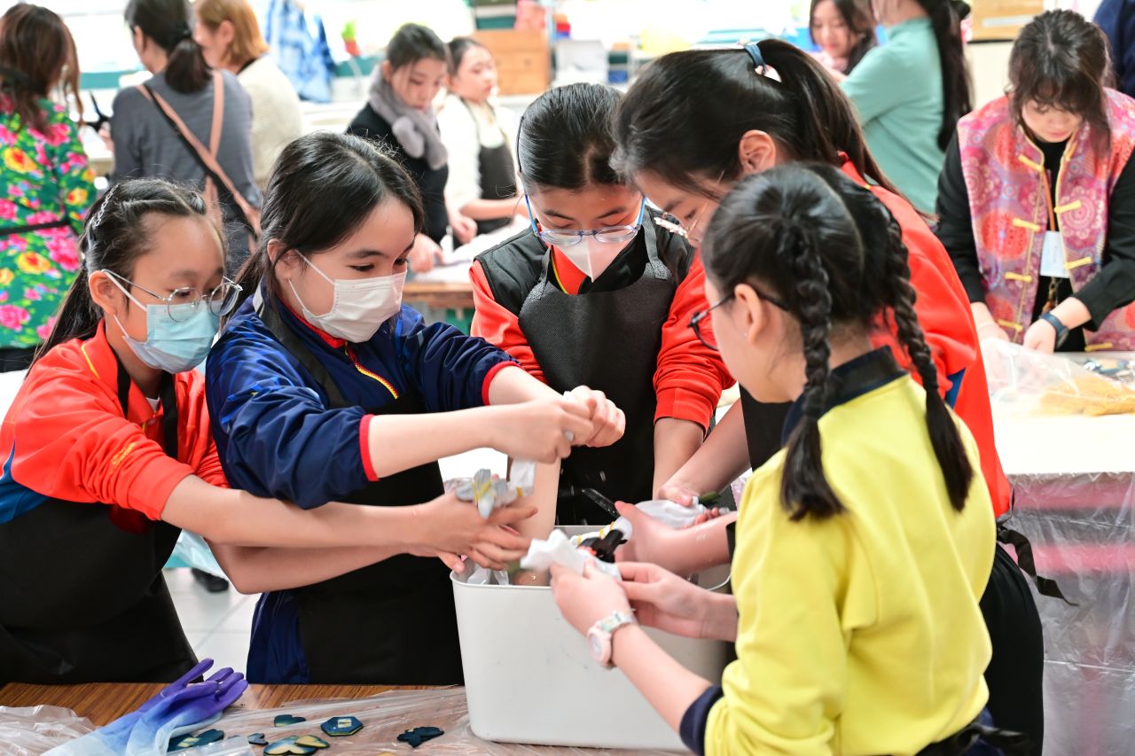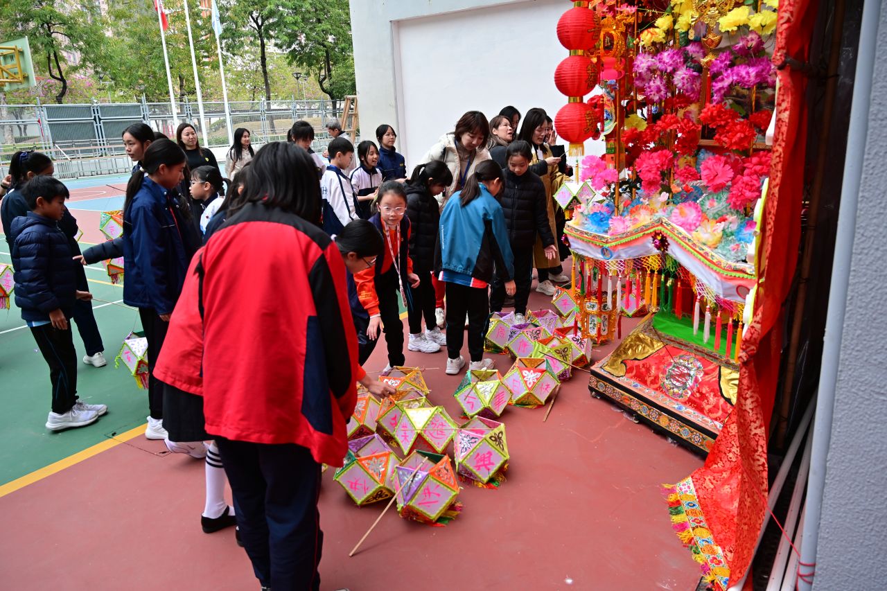 活動中,小學生透過講座了解傳統紮作,更參與「六角燈製作工作坊」並將完成的六角燈懸掛於全港最大的傳統花炮上,寓意傳承光明與祝福。現場亦設有多項非遺主題攤位,包括:彩虹書法、宋錦珍珠風鈴製作、港式蛋撻製作、藍染工藝及觀看粵劇等,內容豐富多彩。