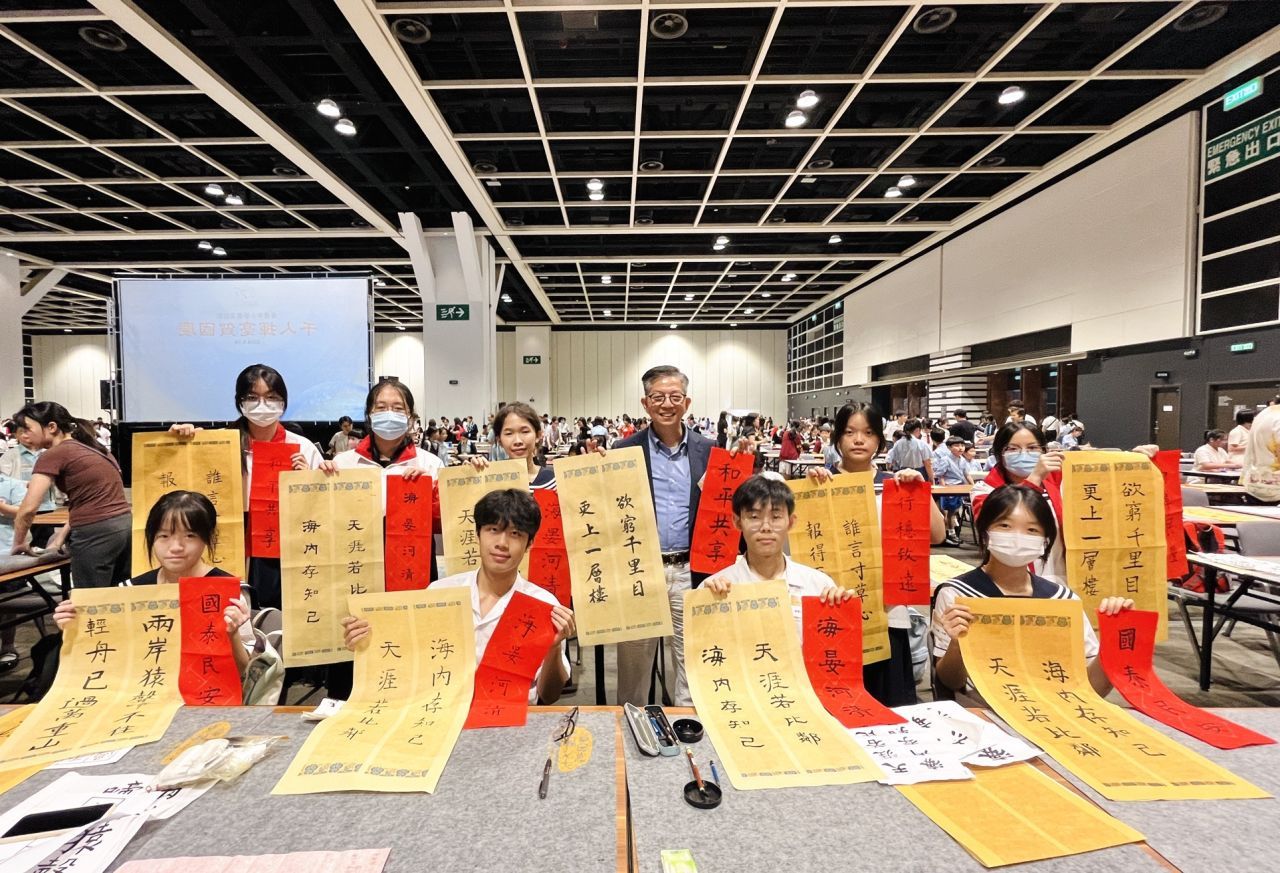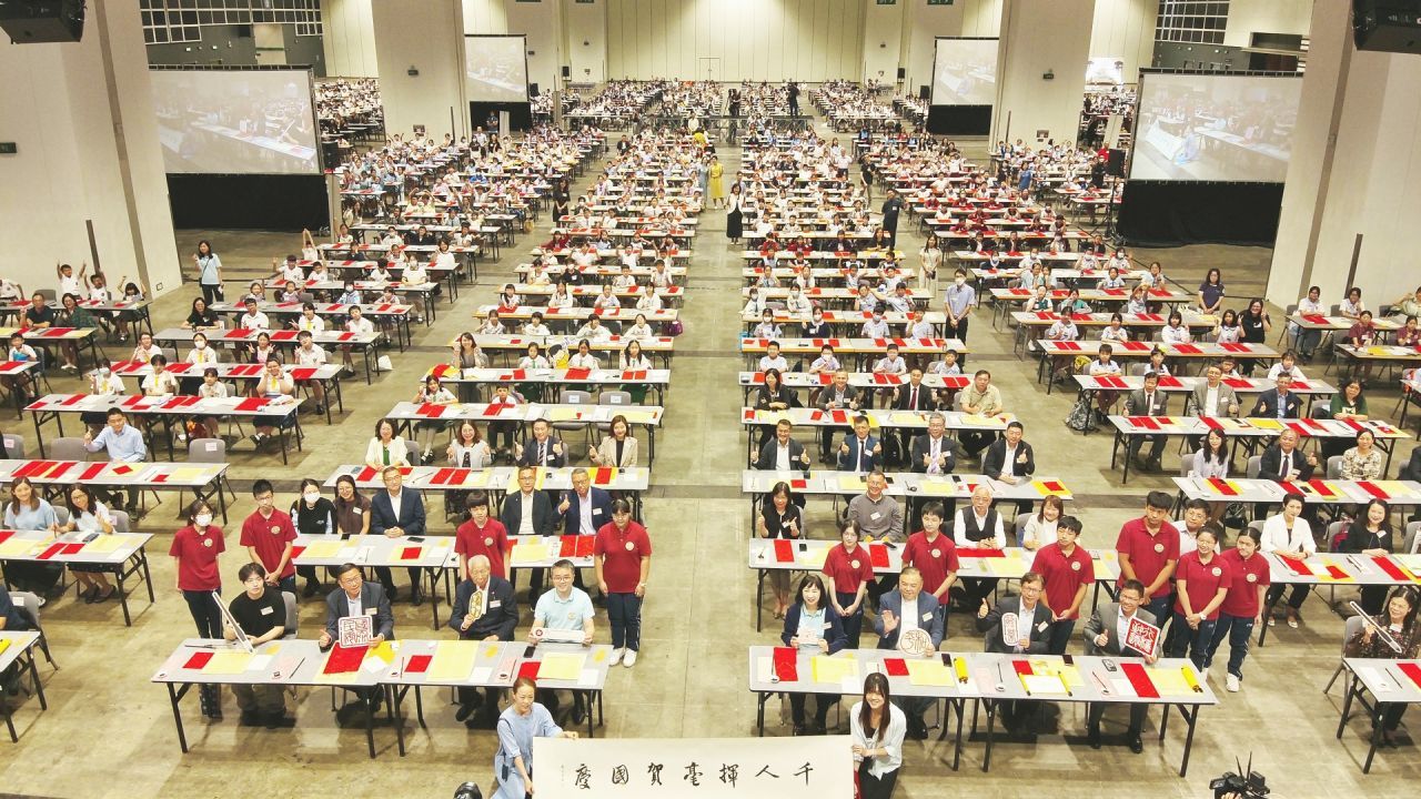 「千人揮毫賀國慶」,同場有超過1800名中、小學生一起寫書法,以弘揚中華傳統文化