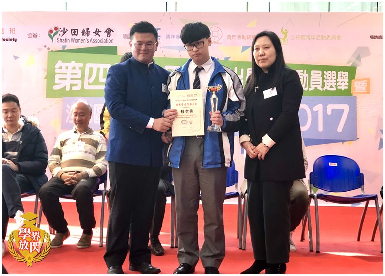 由沙田婦女會與義工服務組織義連班合辦的「第四屆沙田區傑出學生運動員選舉」日前(14日)於馬鞍山廣場舉辦了盛大的頒獎典禮,曾璧山中學中六級鍾智偉同學榮獲「優秀學生運動員獎」的殊榮,以表揚他的付出與努力。