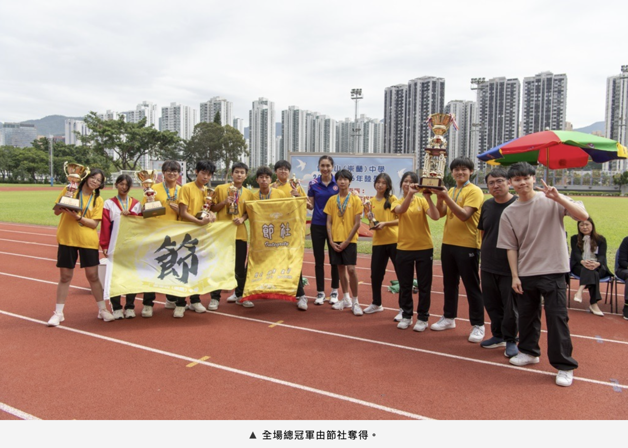 兩日賽事中,四社健兒奮力拼搏,展現出眾的體育才能,並以尊重、認真的態度完成各項比賽。看台上的同學亦表現出色,社際啦啦隊口號比賽氣氛熱烈,師生合力演出,口號響徹全場。班際接力賽中,各班選手互相切磋、奮力爭啟先,充分展現團隊精神與運動熱情。