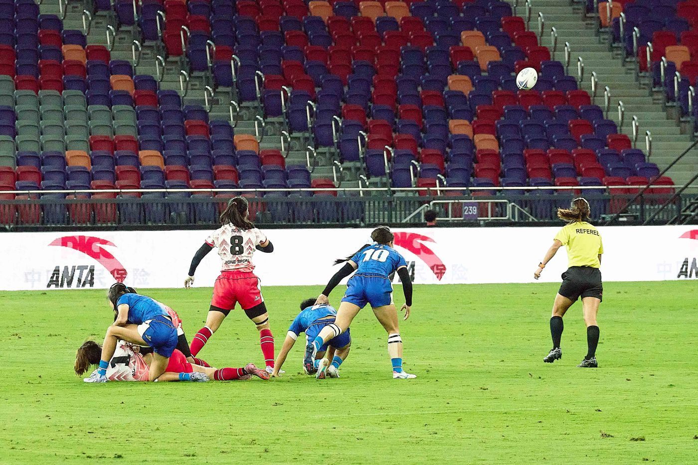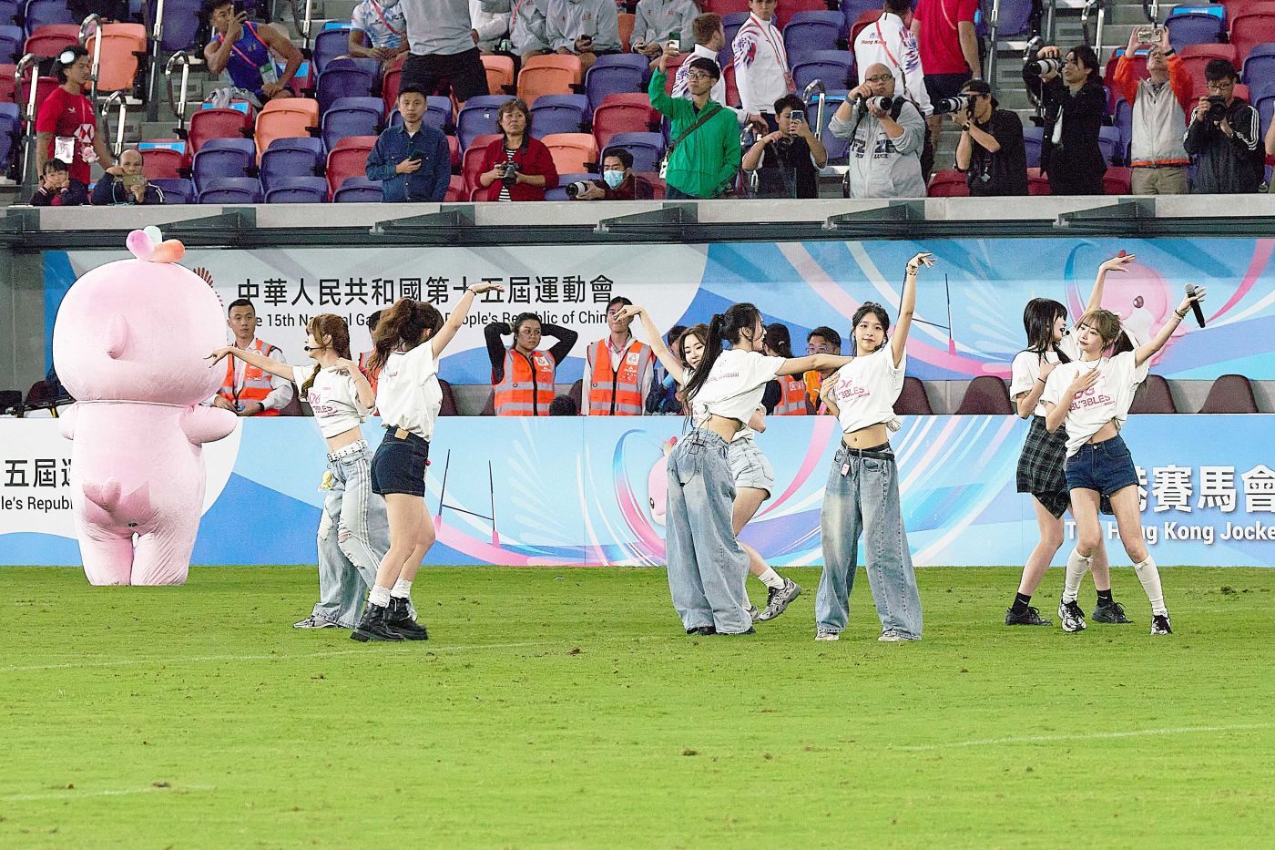 All students are present at the Kai Tak Main Venue, which can accommodate 50,000 people, to support the Hong Kong team competing in the Rugby Sevens at the National Games!