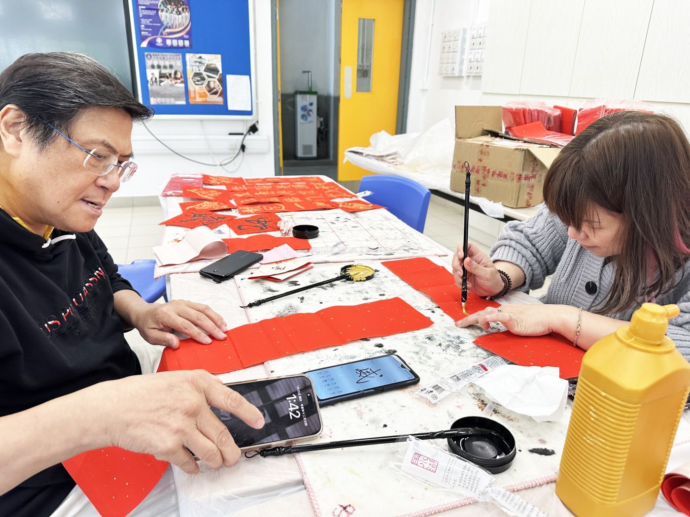 在農曆新年,在家貼上揮春,寄意對新一年的祝福與盼望。是次活動邀請何偉明先生指導家長,何先生是書畫家,教大家寫書法、寫揮春,讓家居增添節日氣氛,迎春接福。
