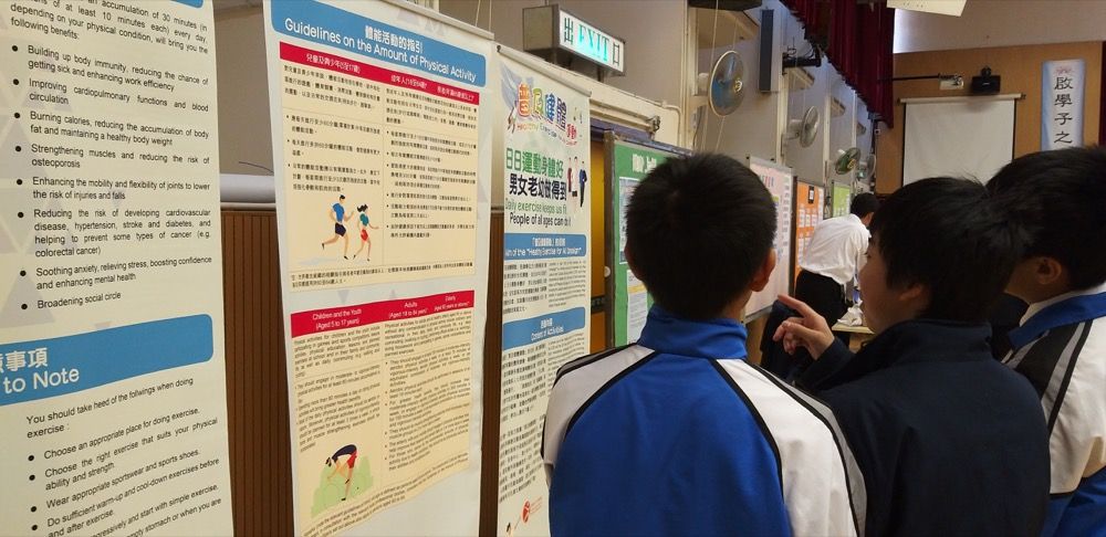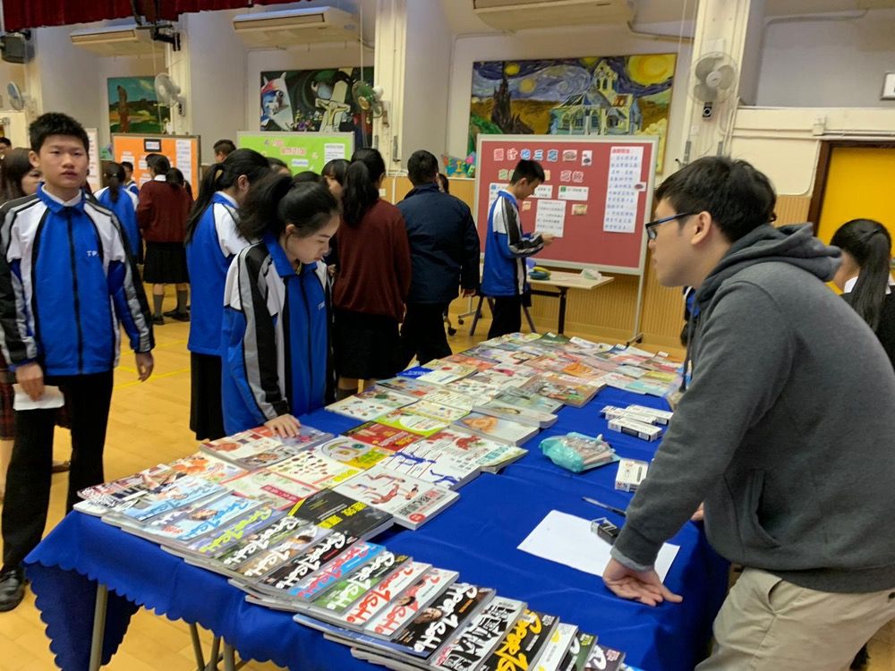 為配合學校目標「活力人生健康校園計劃」,圖書館、課程及閱讀推廣組與其他科組,包括中文、英文、數學、通識、科學、科活、體育、競技啦啦隊及輔導組合作,於12月9日至13日一起舉辦健康生活周,當中有課程上的協調,學科以教授與健康生活有關的課程或閱讀篇章。英文科楊庭暉老師於早會與學生分享體適能,並推介一本與此有關的英文圖書。在12月9日至10日的午息時段,禮堂內有健康生活書展及展板,並設置不同的攤位遊戲,讓學生從遊戲中學習並鞏固健康及禁毒知識,學生亦可憑遊戲券上的蓋印換取禮物及新鮮水果。同學們積極投入活動,歡聲笑語,此起彼落。