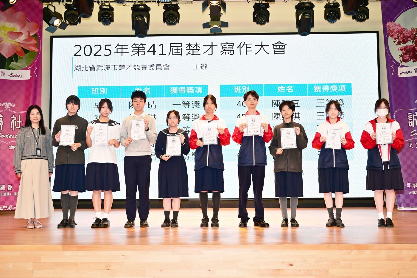 本校同學在各領域均有出色表現,包括學術、體育、音樂與美術等領域。這些獎項與成就,正是同學們平日辛勤耕耘、努力不懈的最佳證明。期待每位同學能持續進步,在自己熱愛的舞台上,發光發熱。