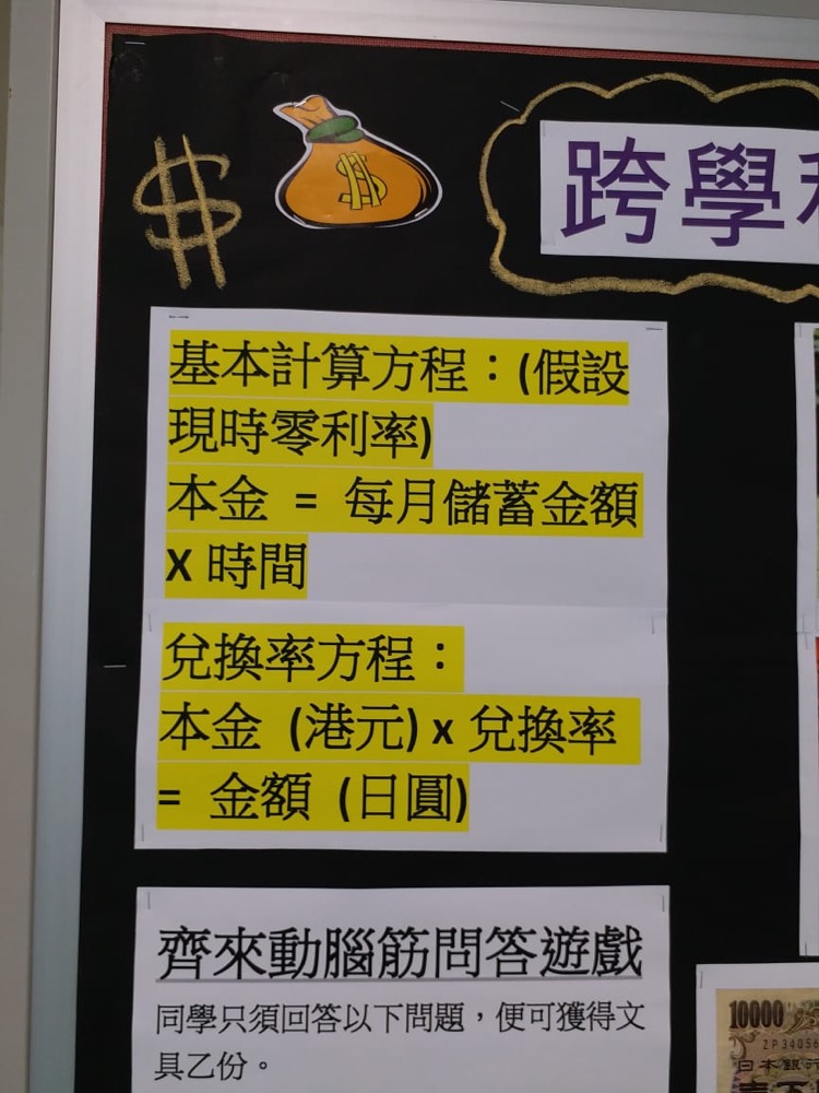 11月26至30日為跨學科閱讀周,參與的學科有企財科、旅款科及經濟科,主題為儲蓄與旅遊。圖書館內除了有展板展示相關資訊及「齊來動腦筋問答遊戲」外,還有影片播放、科目書展、擴增實境(AR)世界地圖探索等。圖書館領袖生也於早會推介旅款科圖書,提升同學對相關學科書籍的關注度。