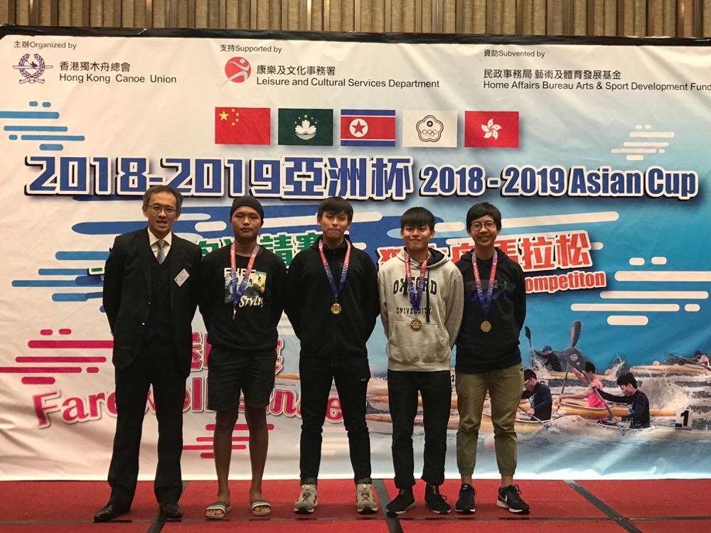 在眾多選手競賽下,本校學生2C班林啟澤2C班黃灝生於「亞洲杯 - 獨木舟邀請賽(香港) 」的男子 T2-500米取得季軍,而2B劉灝斌6C 劉穎冲於「亞洲杯 - 獨木舟馬拉松(香港)」勇奪男子U23組K2 (23公里) 冠軍。