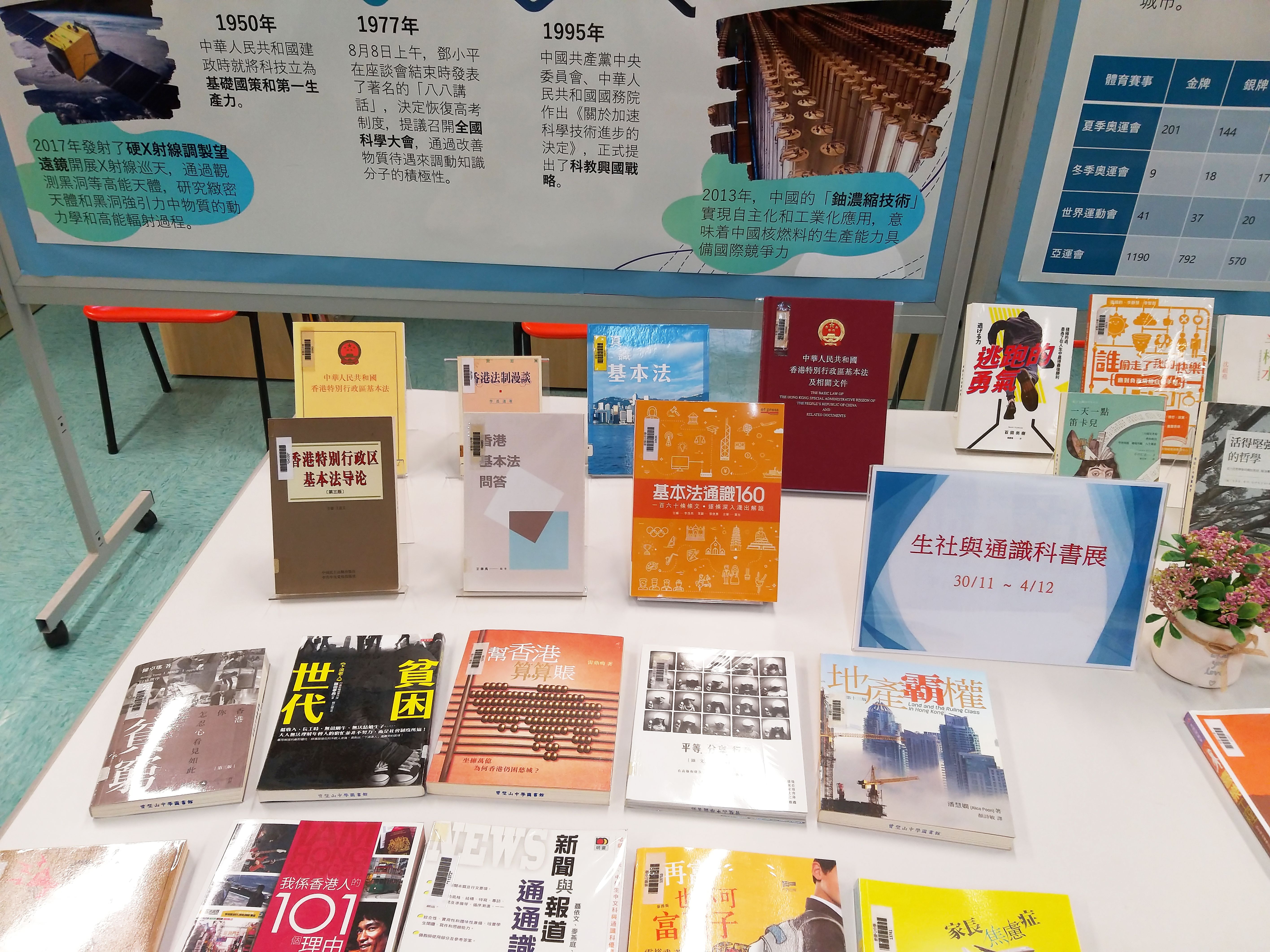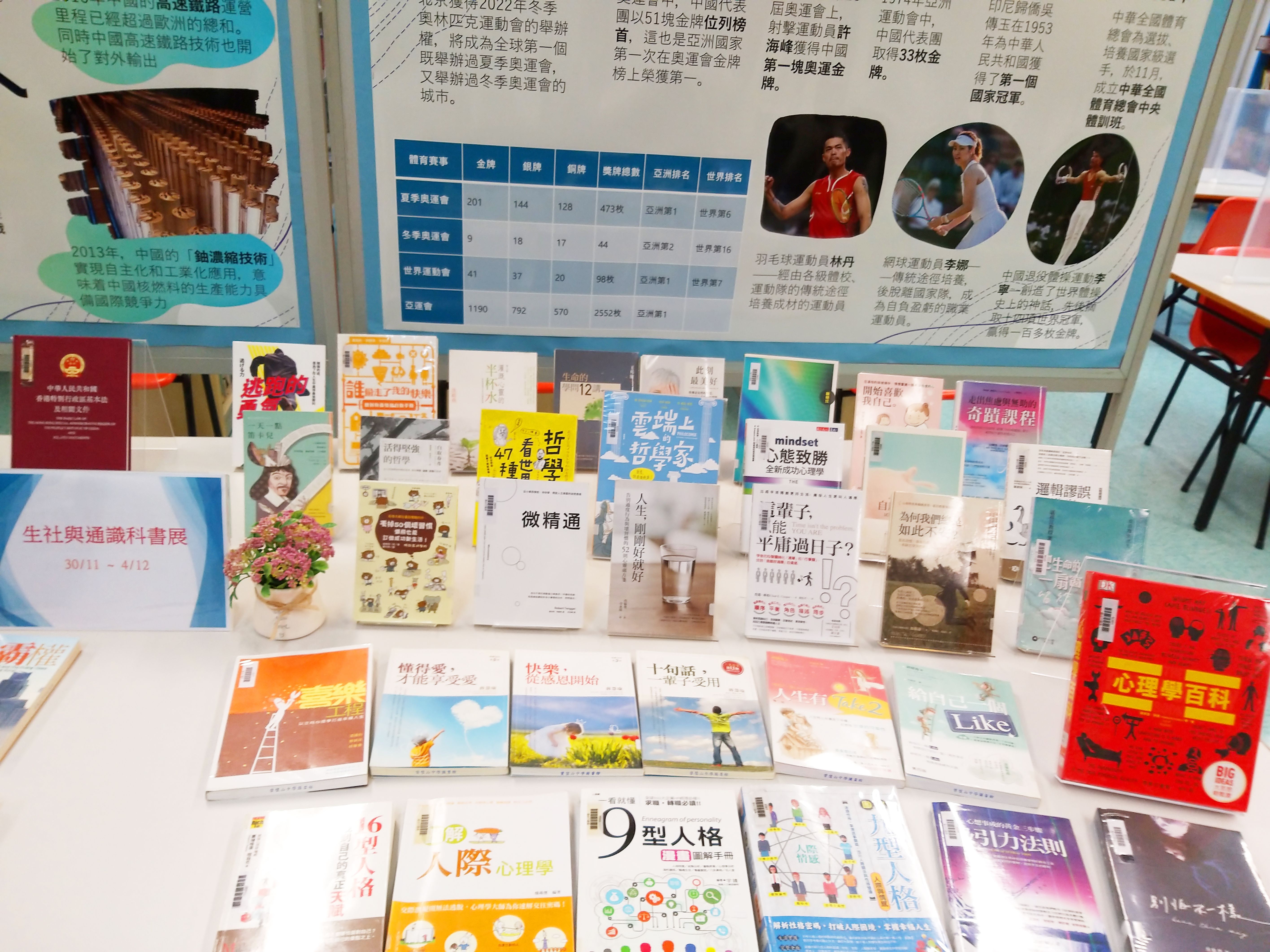 圖書館內除展出生社及通識科圖書外,還有展板介紹中國科技發展及中國體育發展,亦有好書推介,以提升同學的閱讀興趣及對相關課題的認知。