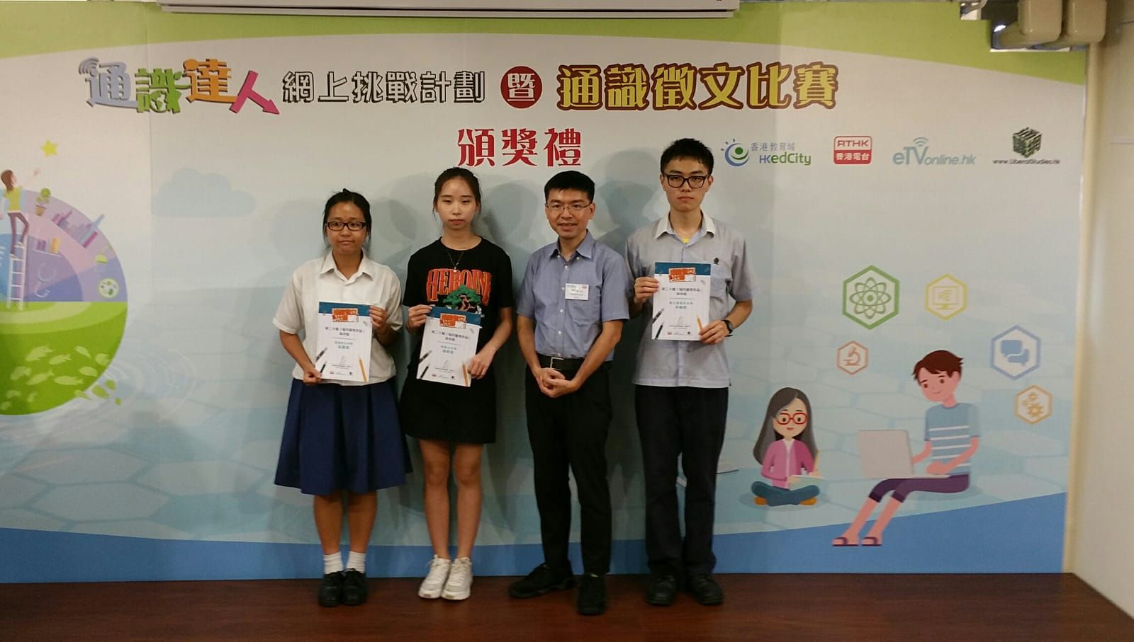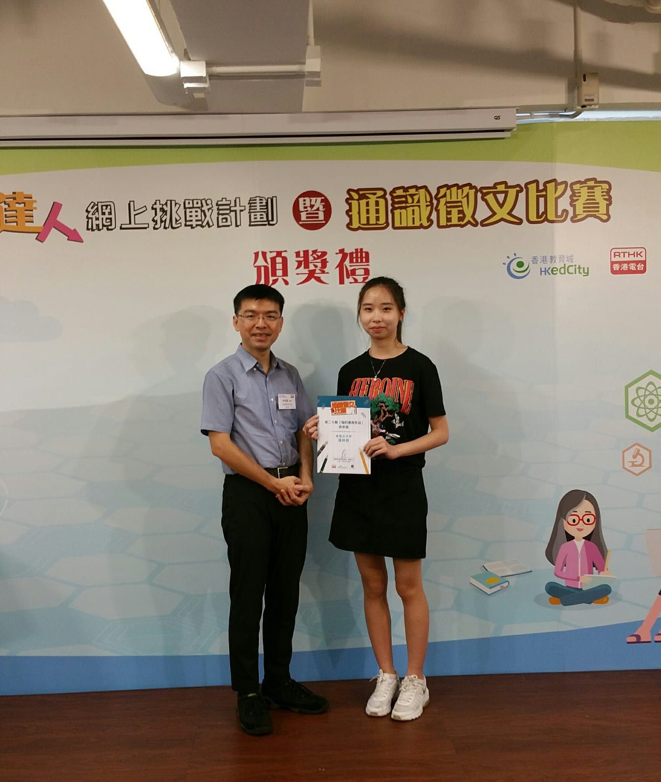 香港電台及香港教育城合辦通識達人 網上挑戰計劃 暨通識徵文比賽。透過比賽培養學生分析數據、詮釋漫畫及發揮思辨的能力。