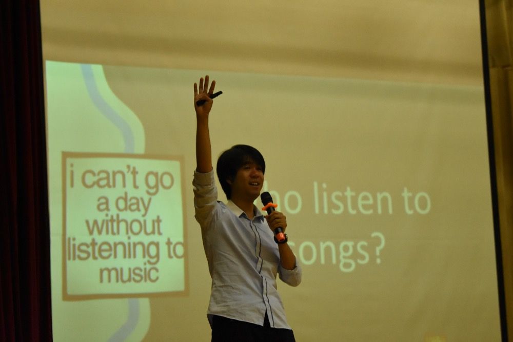 To create a language-rich and joyful atmosphere for students to learn English and to enhance their confidence and competence in using English, English Department organized an English singing contest during the post-exam period. More than 10 students and several teachers performed their favourite songs on stage. We are very happy to invite Mr Patrick Leung, a lecturer at The University of Hong Kong, to give us a talk about ‘Learning English through songs’ before the competition began. All of the audience enjoyed themselves at the show very much and expressed their interest in joining the competition next year.