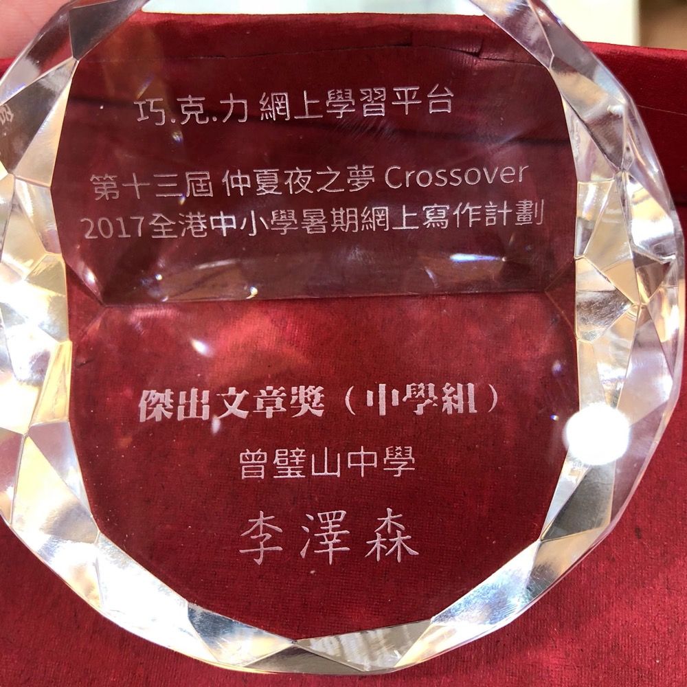 本校學生努力下,榮獲「優質學校寫作文化獎」,而5A班卓俊燊同學及李澤森同學更得到全港傑出文章獎,為校增光,另外,6A顧靜雯、施明鑫、5A陳川杰、吳歡恩同學亦得各校最受歡迎文章獎,值得鼓舞。