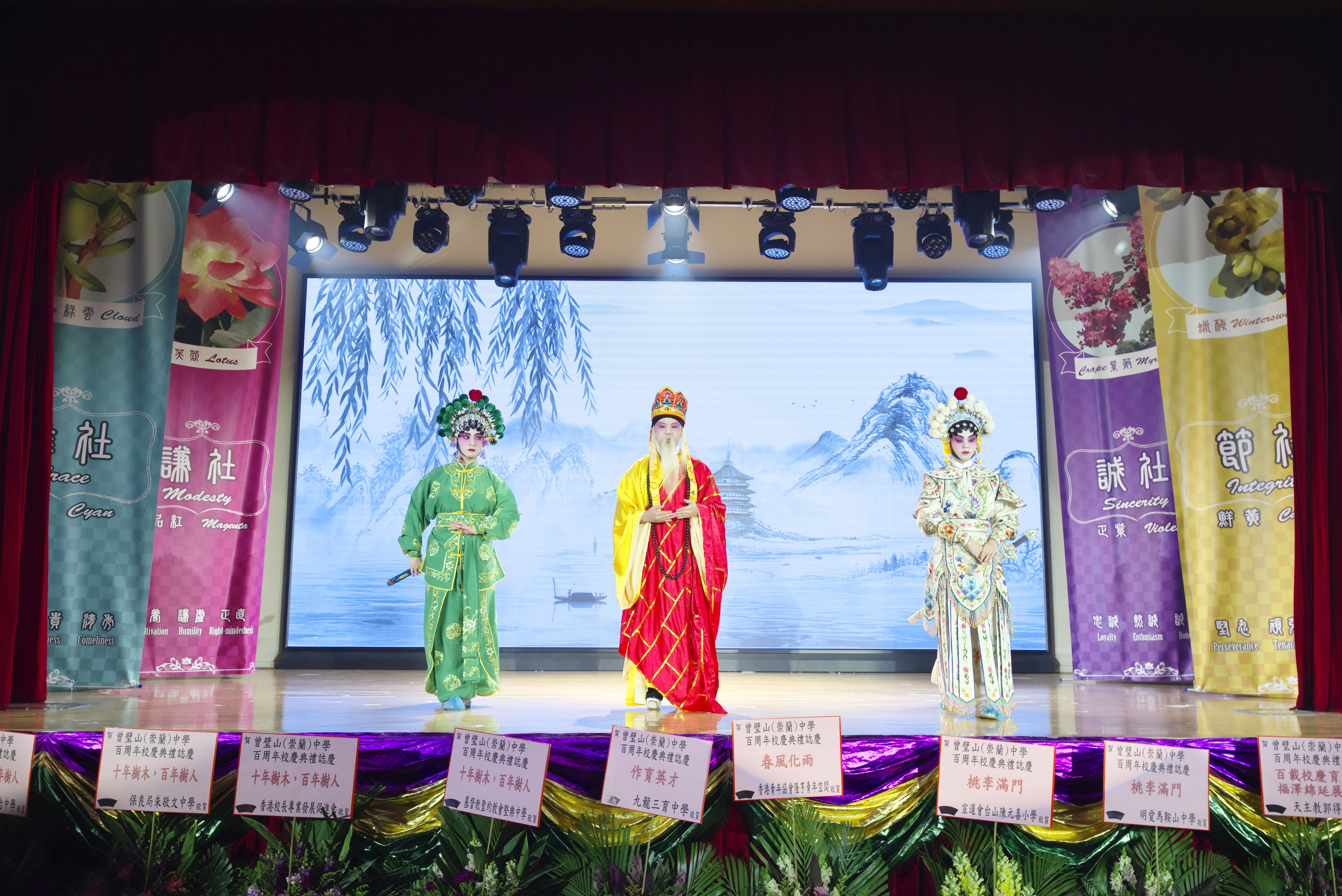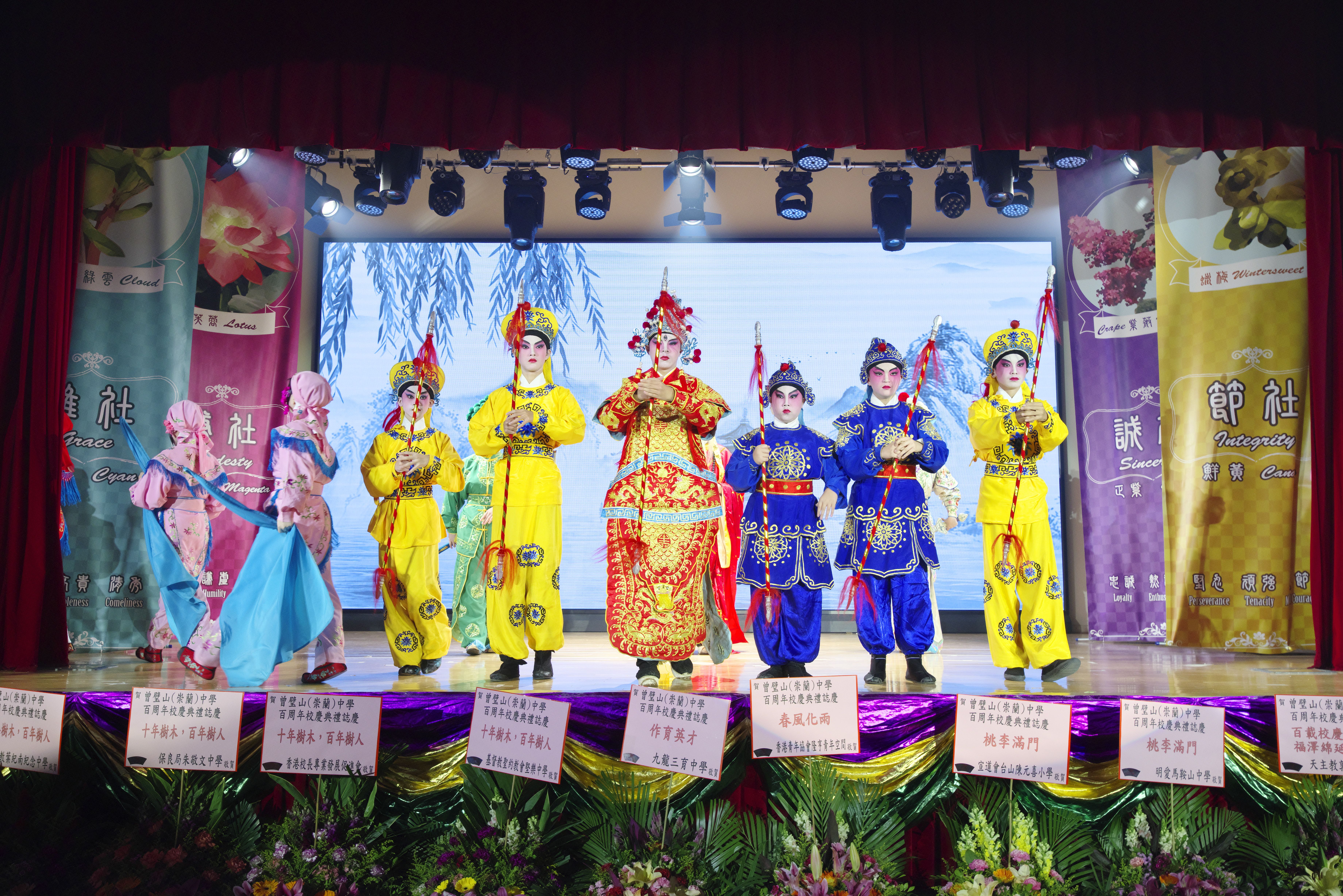 百周年典禮的表演節目包括舞蹈、集誦、步操樂團演奏、雜耍、粵劇、師生合奏、師生合唱團,集合了本校最優秀的師生表演節目。本校師生為慶祝學校100周年,齊心協力付出,花費了不少努力及時間練習。他們的精采表演將表演氣氛推至高潮,全場掌聲及歡呼聲不絕。