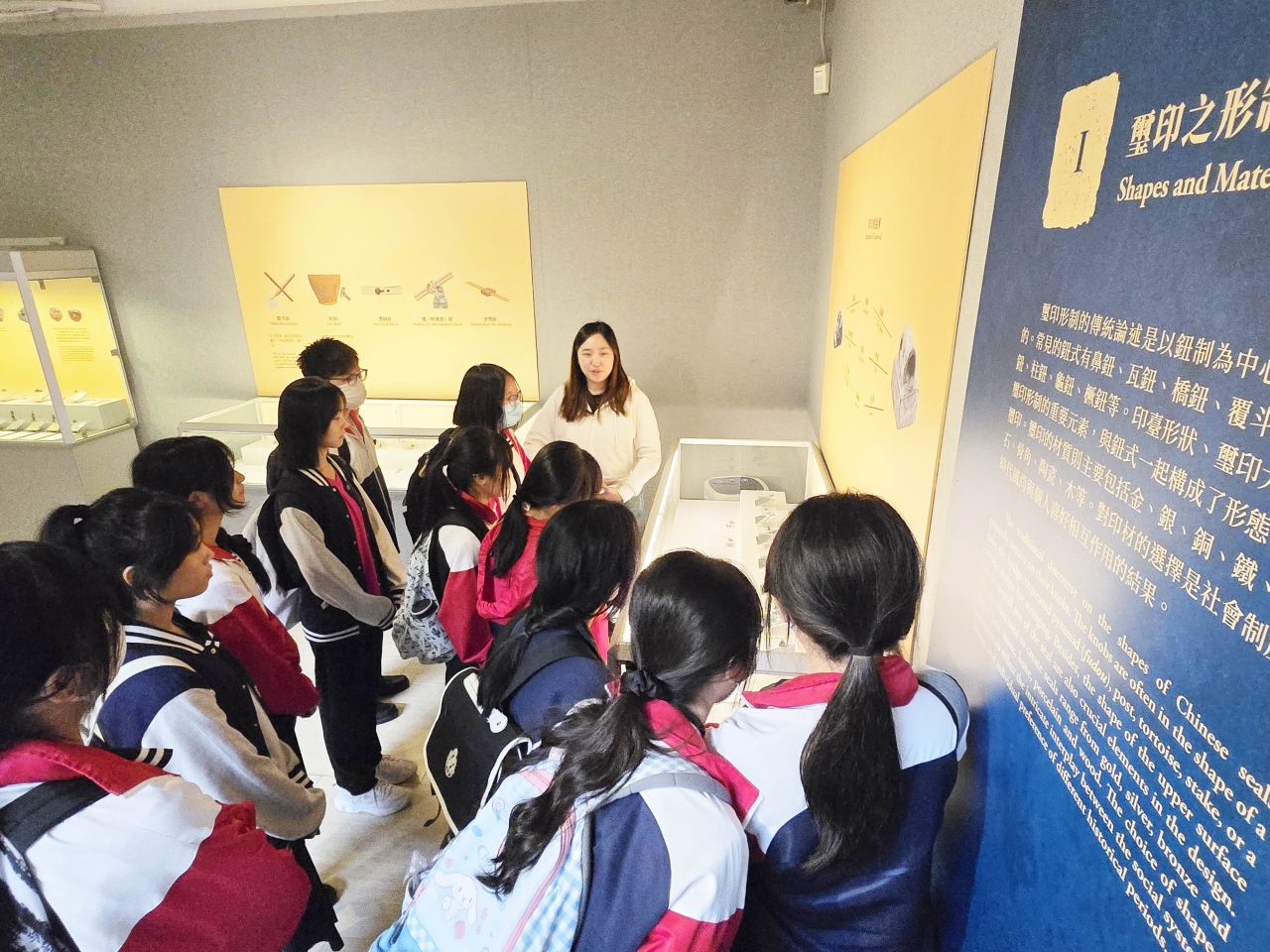 2024年11月19日,本校中五級視覺藝術科同學參觀了香港中文大學文物館舉辦的「北山汲古:中國璽印」特別展覽。透過展覽的互動導賞,令各同學了解涵蓋先秦古璽至近代文人篆刻,以品類及歷史發展為線索,展示璽印演化的脈絡。
