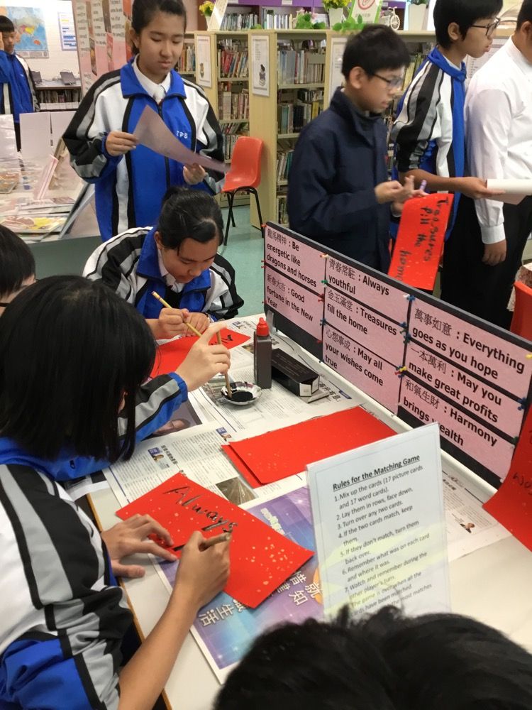 Ms Chan set up several game booths in the library where students had the opportunity to learn some new vocabulary about English books, write Fai Chun in English and get some chocolate through the exciting games. It was a lot of fun!