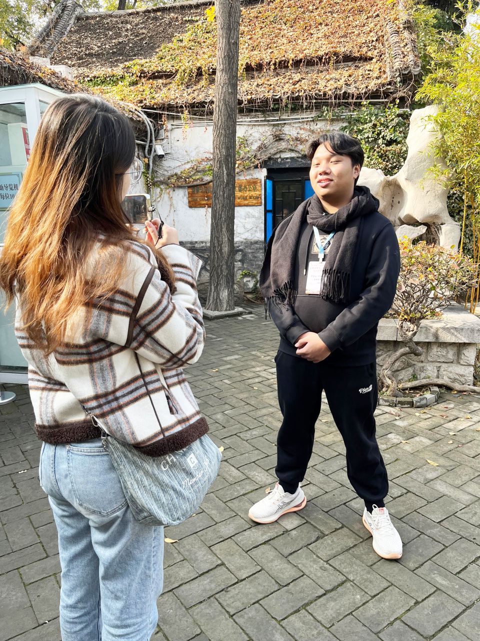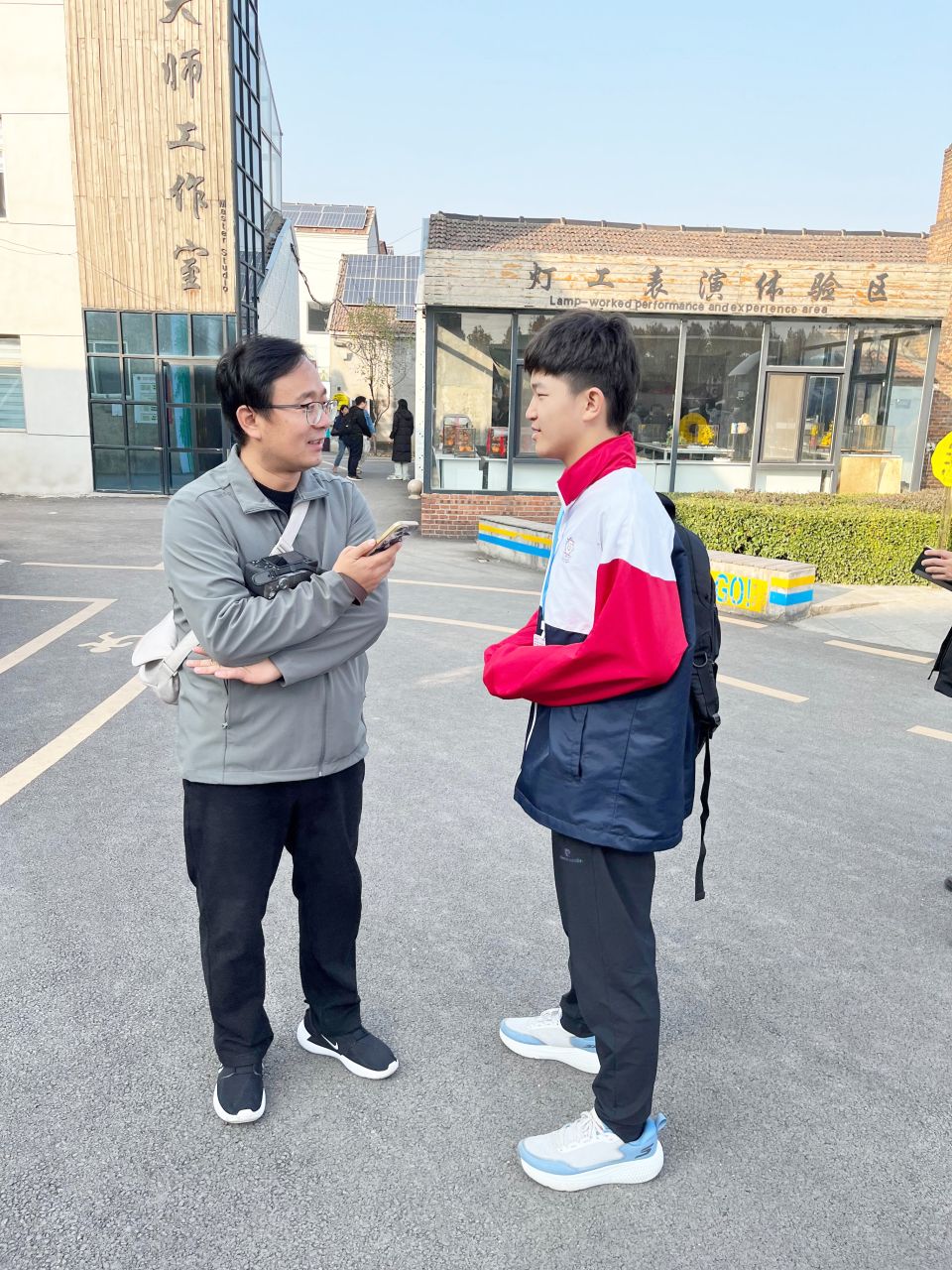 3B班趙雲鵬同學於淄川區領尚琉璃文化創意園接受大公文匯採訪。