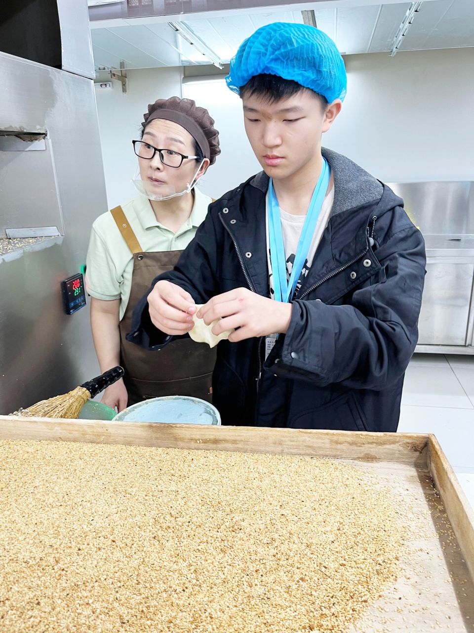 3B班趙雲鵬同學體驗製作周村燒餅的過程。