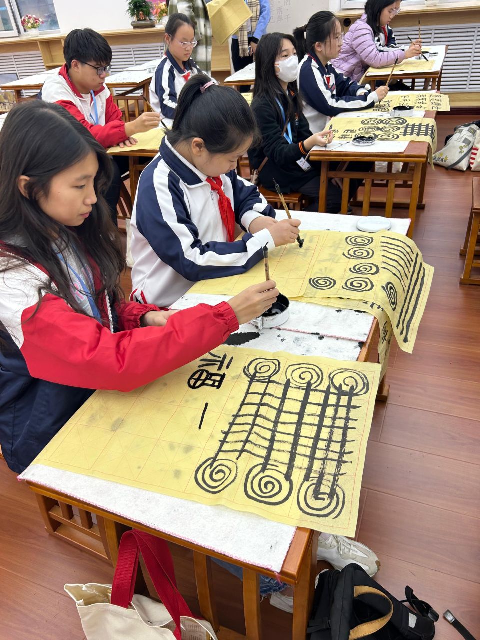 2D班蘇海晴同學於東營區黃河中學參與書法體驗課。