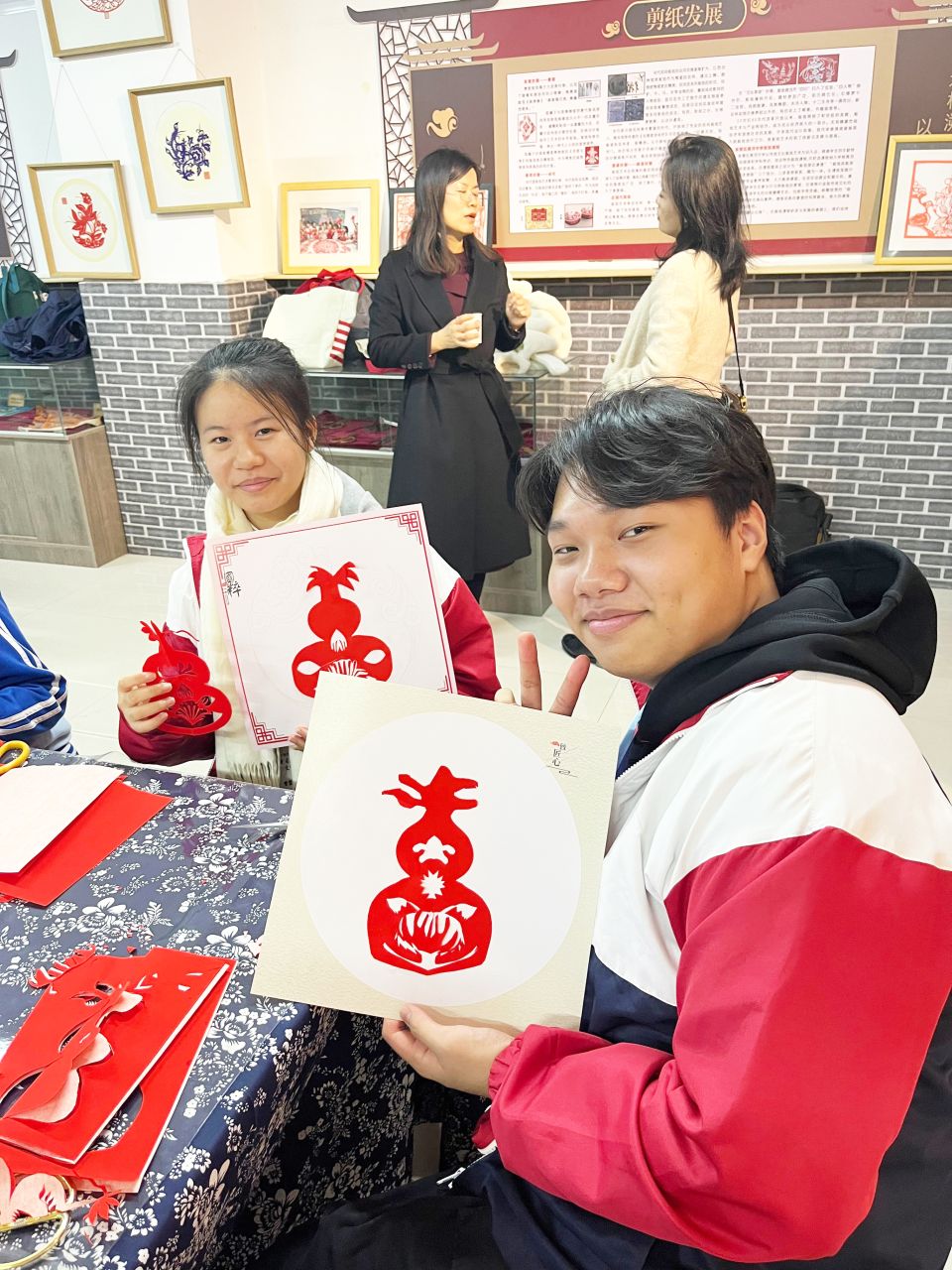 3A班翁康元同學及3B班陳家樂同學於東營區黃河中學參與剪紙體驗課。
