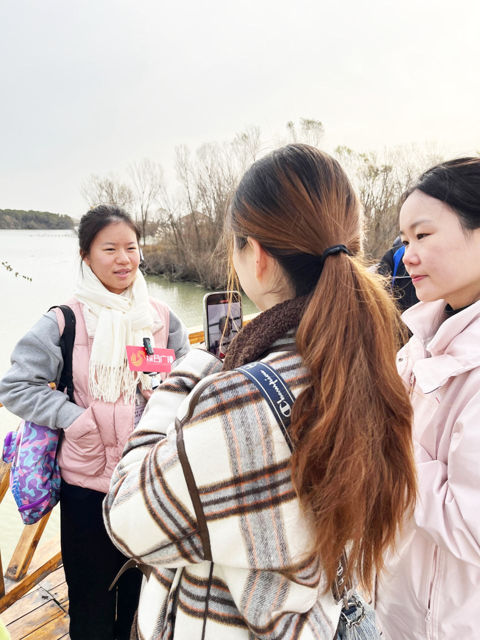 我校學生於黃河口生態保護區接受山東電視台採訪。