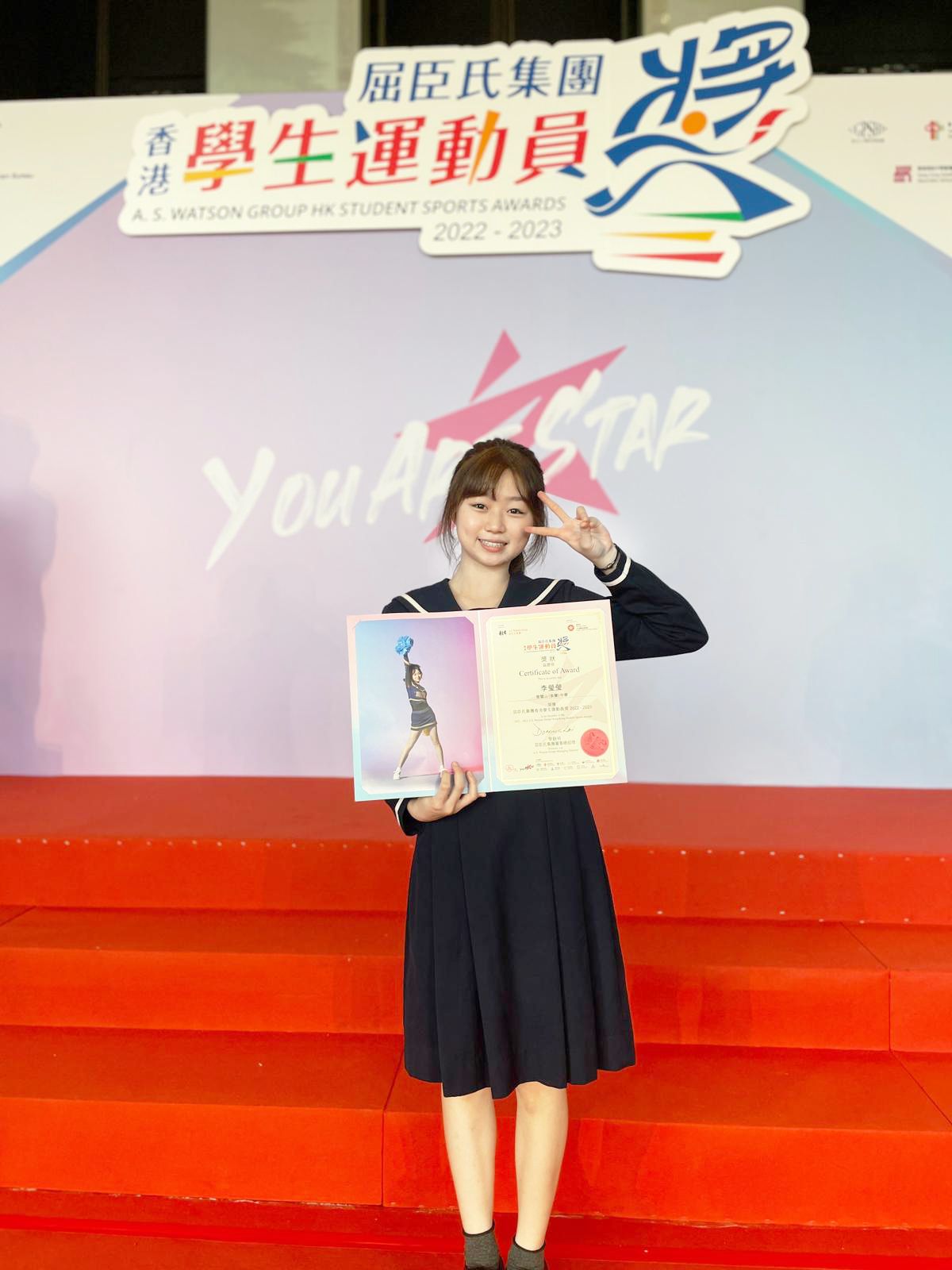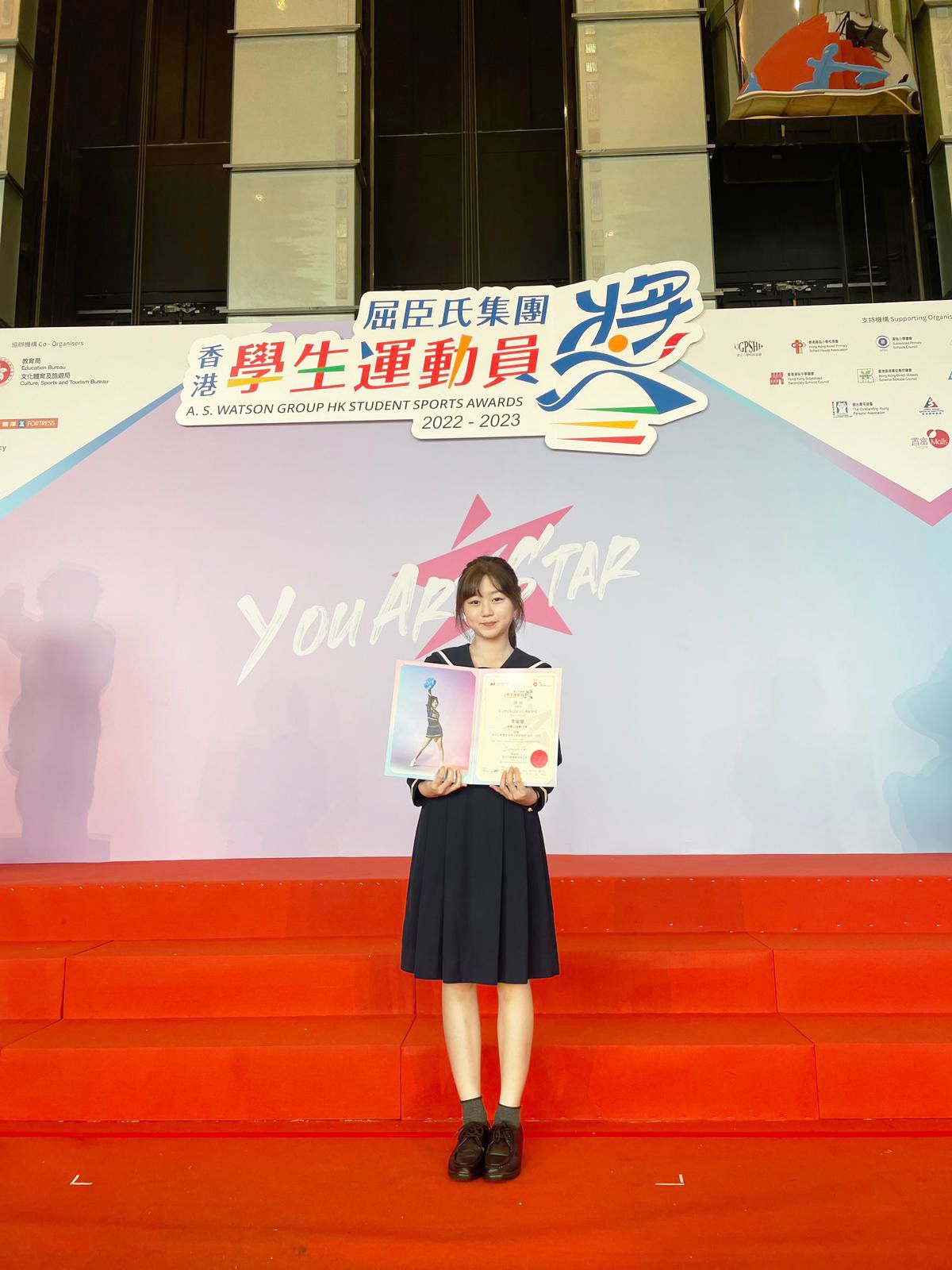 競技啦啦隊6B李瑩瑩同學,獲屈臣氏集團頒發「香港學生運動員獎2022至2023」,並接受報章採訪。
