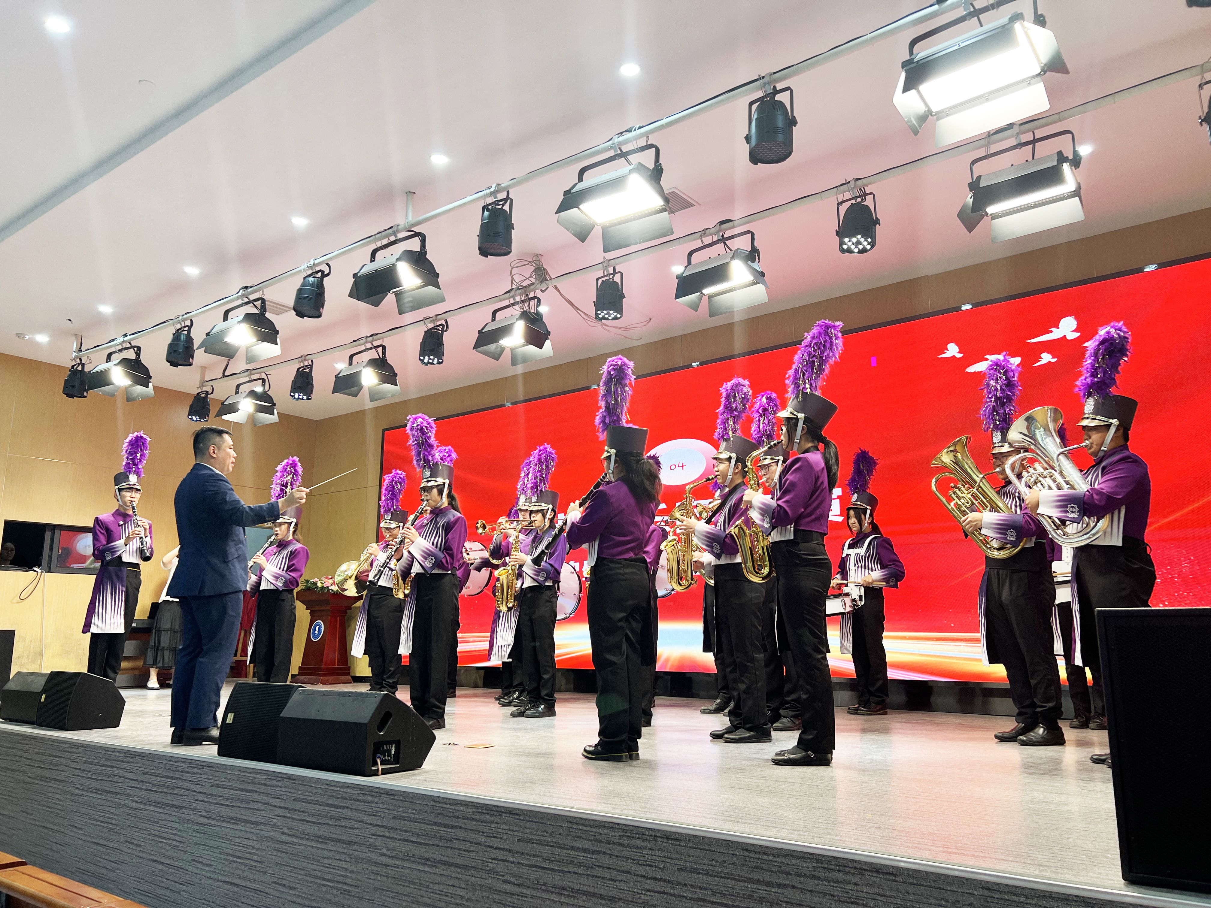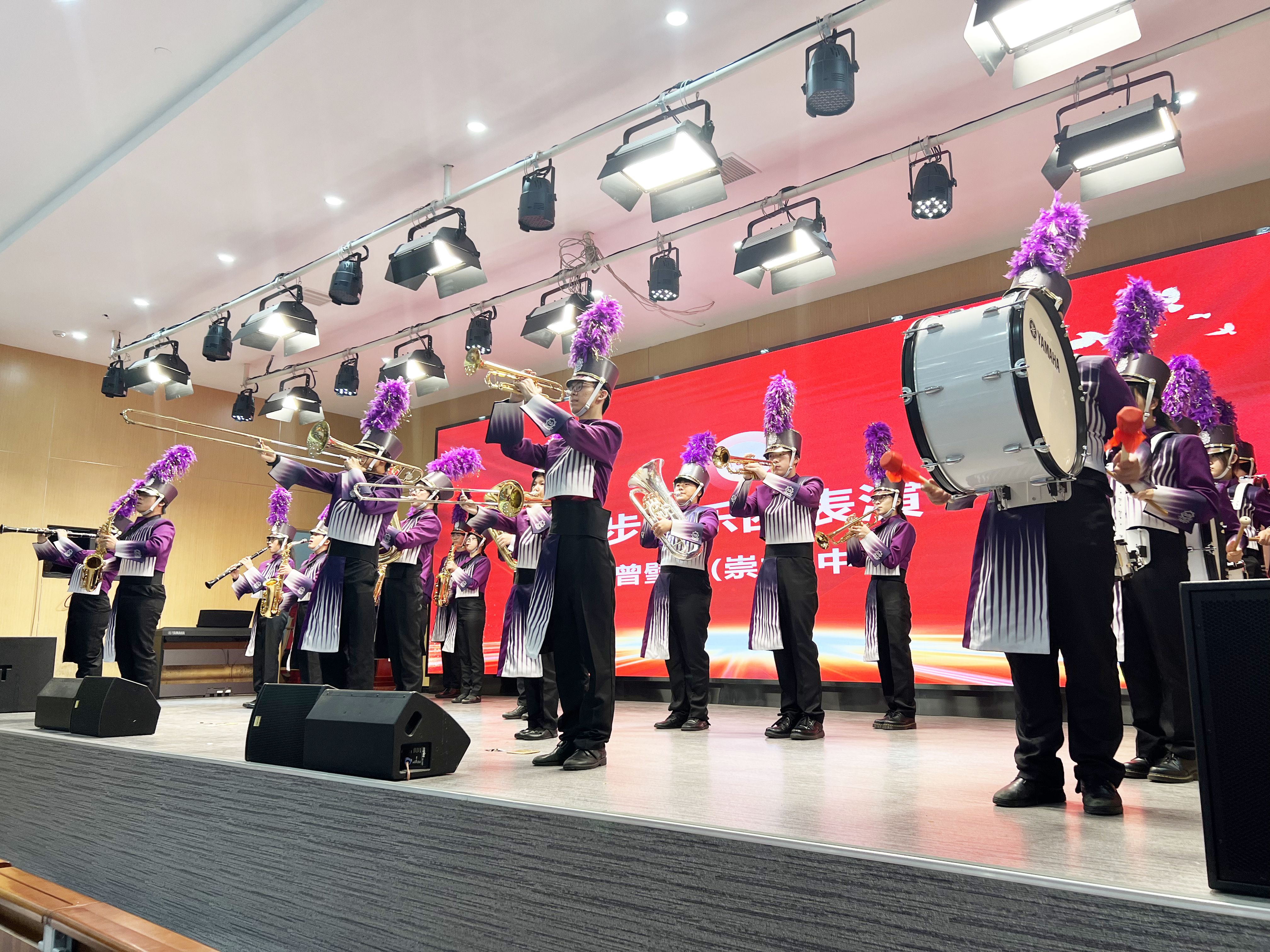 在交流過程中,兩地的樂團成員們一同參與了精彩的音樂表演交流。本校步操樂團以整齊劃一的隊列,高昂的士氣和充滿節奏感的演奏向姊妹學校展示了三首樂曲。同時,姊妹學校的樂團也為我們帶來了當地特色的音樂演奏。