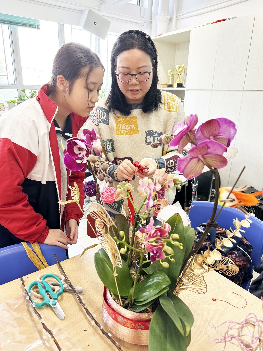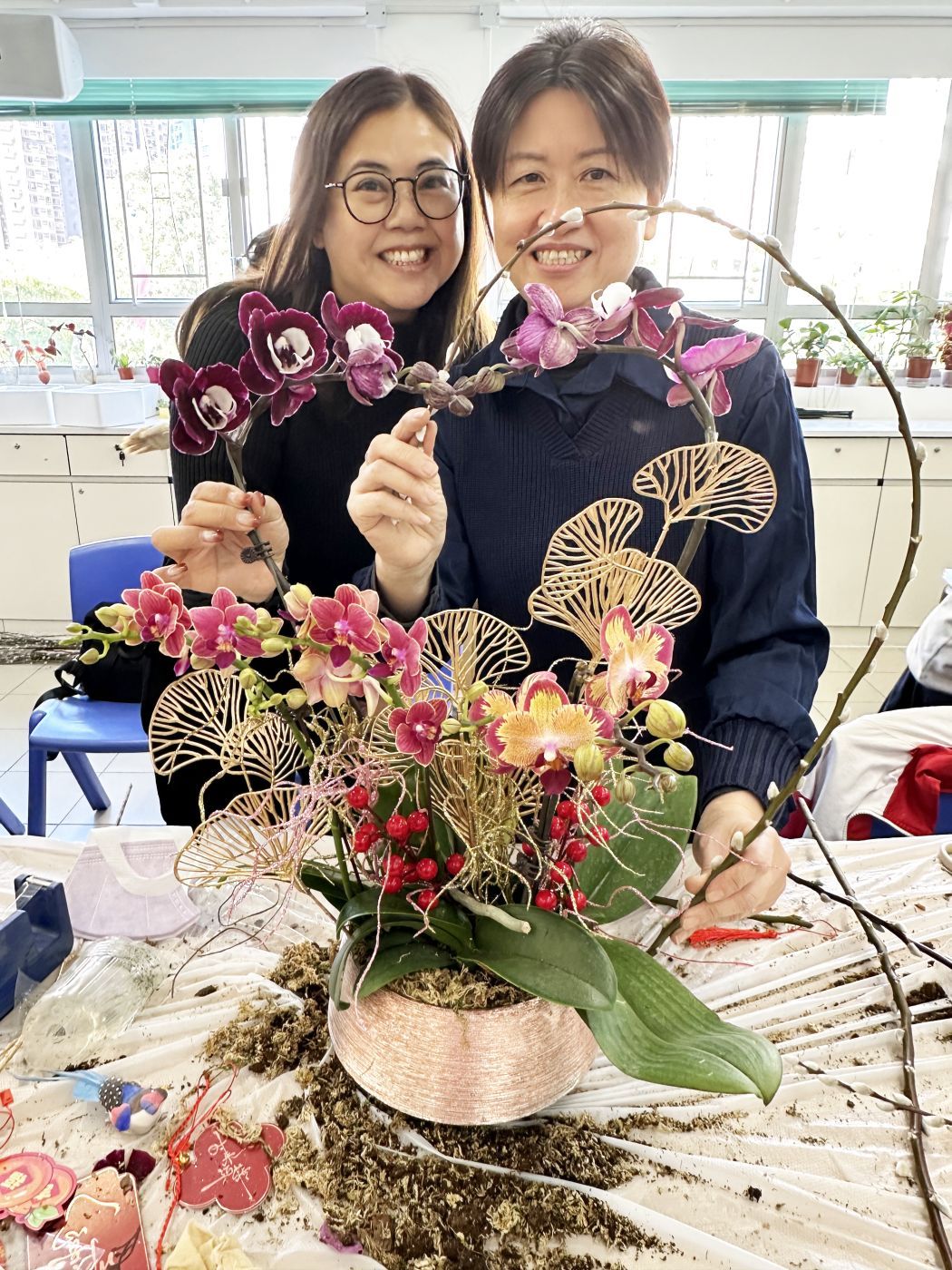 在每年中國農曆新年,大家總愛在家擺放一盆蘭花,蘭花的花語:美好、高潔、賢德,大家都希望在新一年萬事如意。家教會特意舉行是次活動,希望將祝福送給每一個家庭。家教會籌委為專業花藝師,她指導家長們怎樣把蘭花砌成一個喜氣洋洋的賀年蘭花盆栽,最後加以裝飾,讓每一個家居增添節日氣氛,過一個喜慶洋洋的農曆新年。
